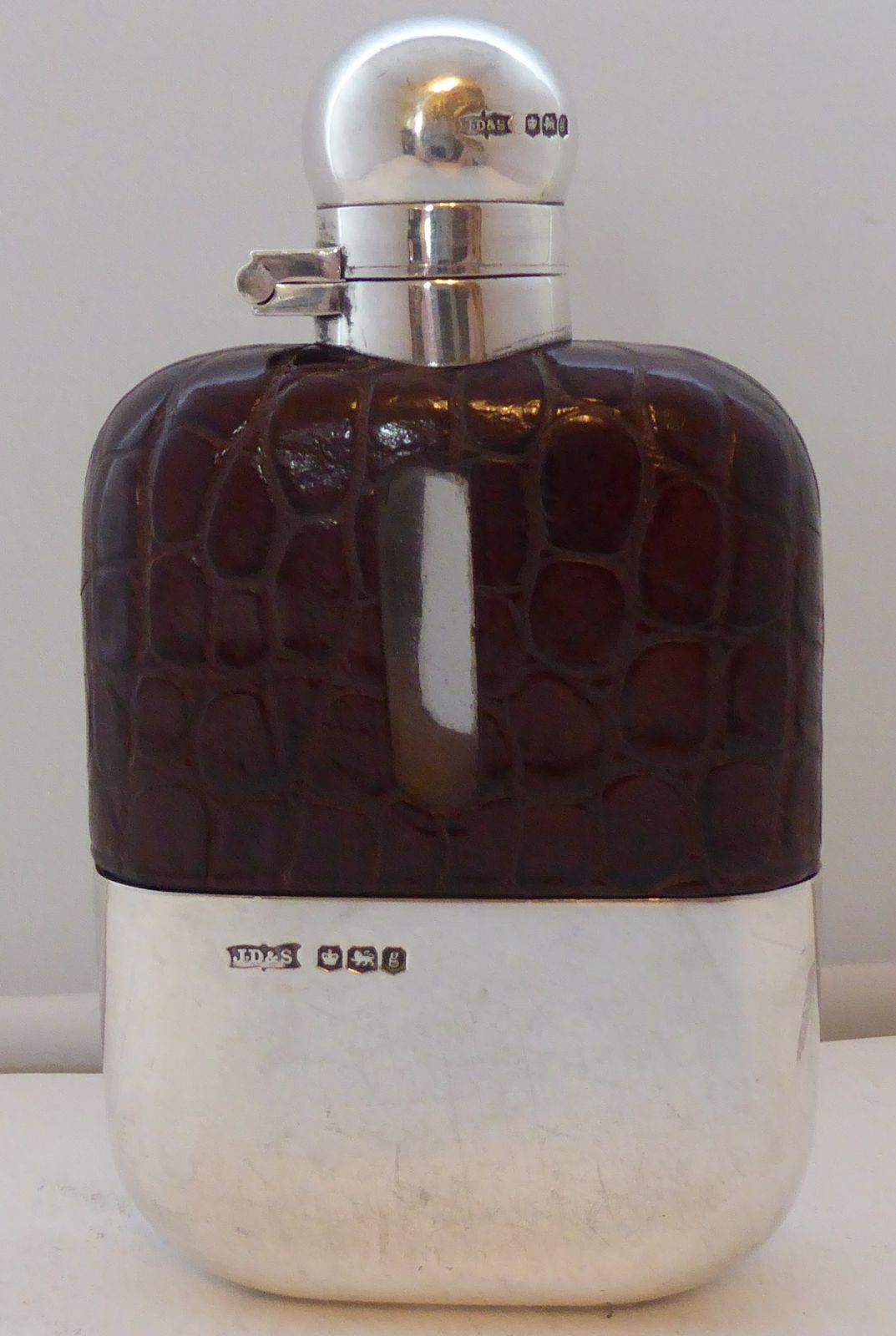 1924 James Dixon Solid Hallmarked Silver Crocodile Skin Bound Hip Flask