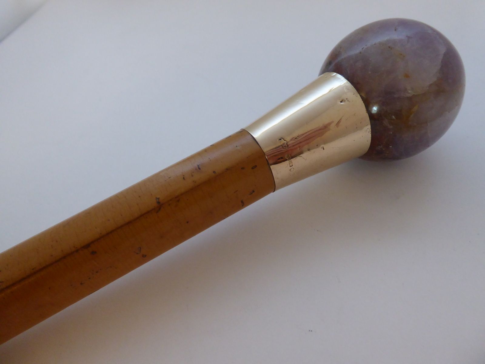 1924 Walking Stick Cane Hallmarked 9ct Rose Gold Amethyst Malacca