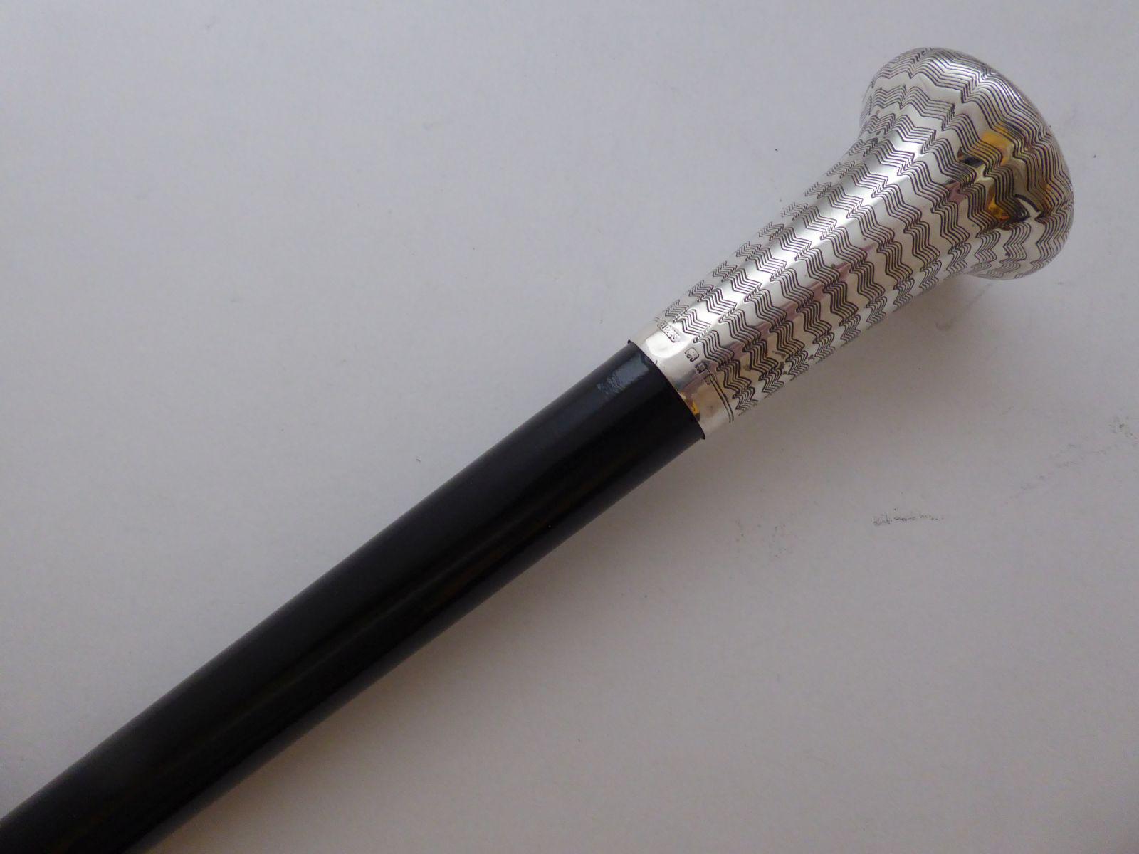 1925 Walking Stick Cane Hallmarked Silver Pommel Ebony Wood Shaft