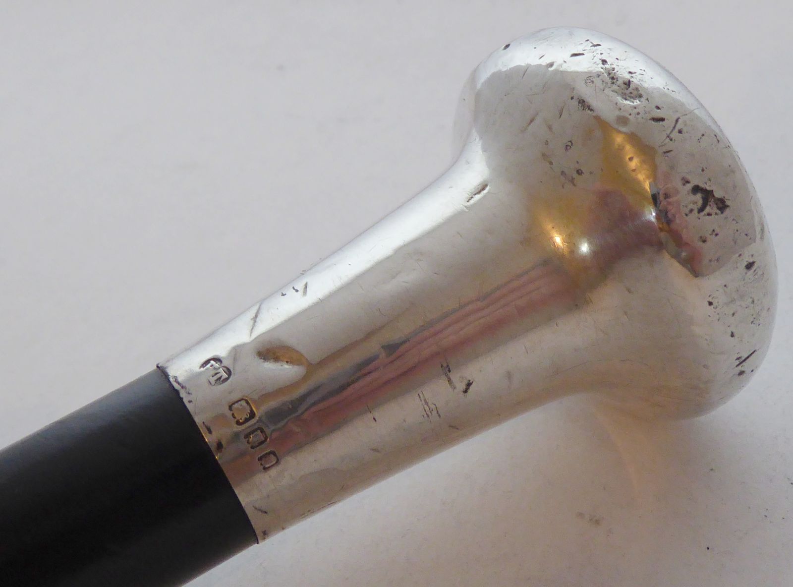 1925 Walking Stick Cane Hallmarked Solid Silver Pommel Ebonised Wood Shaft