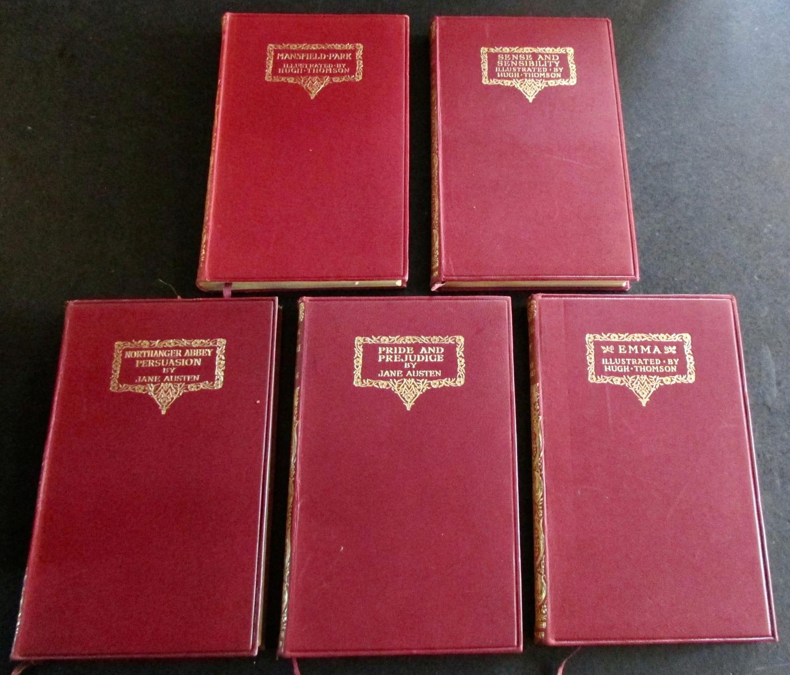 1926 Works of Jane Austen 5 x Volumes Full Red Leather Deluxe Bindings