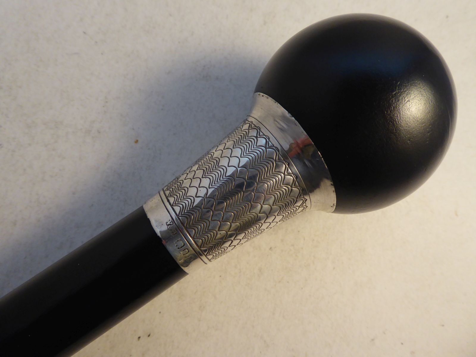 1928 Undertakers Walking Stick Cane Hallmarked Solid Silver Ebony Shaft