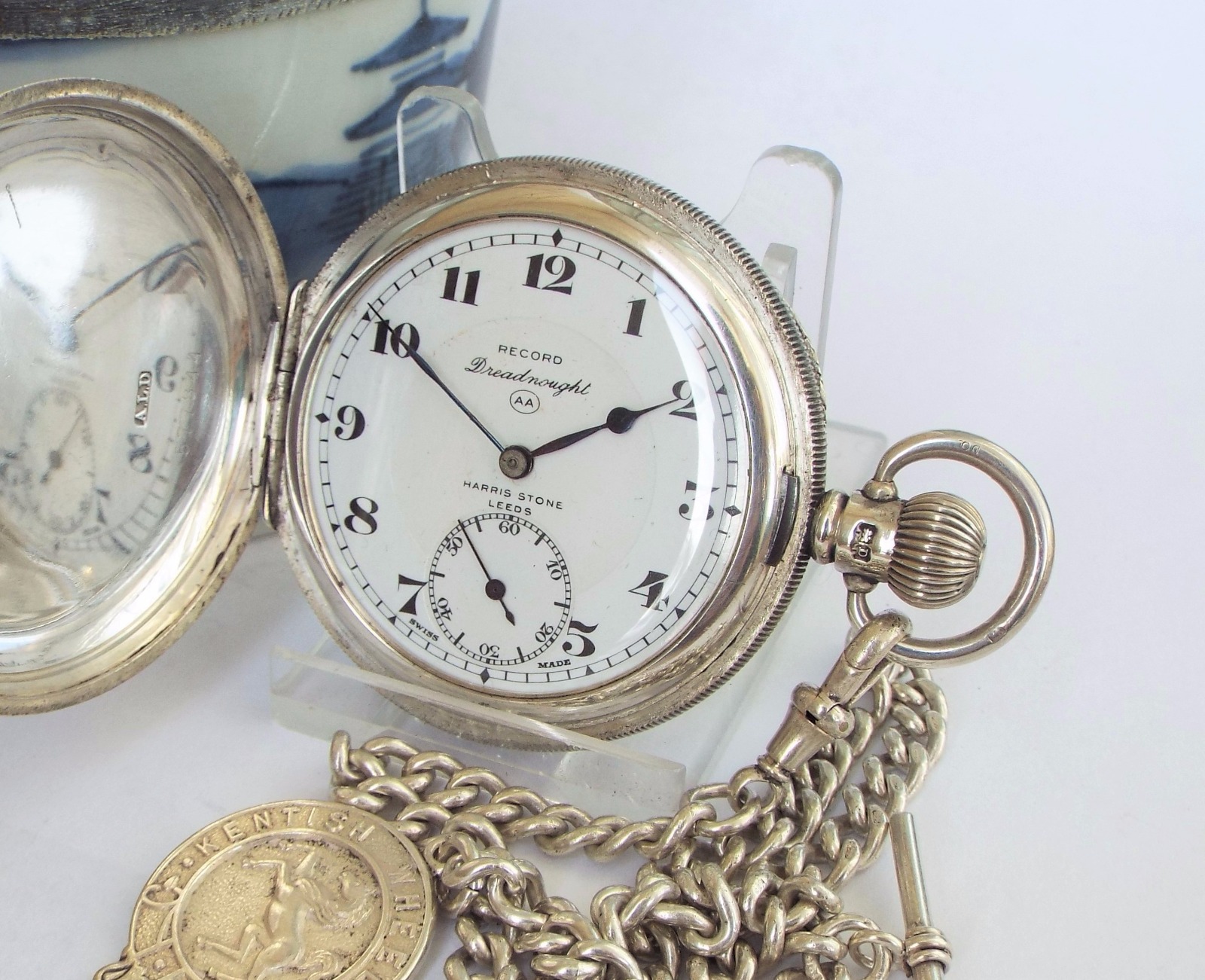 1929 Silver Record Dreadnought Hunter Pocket Watch
