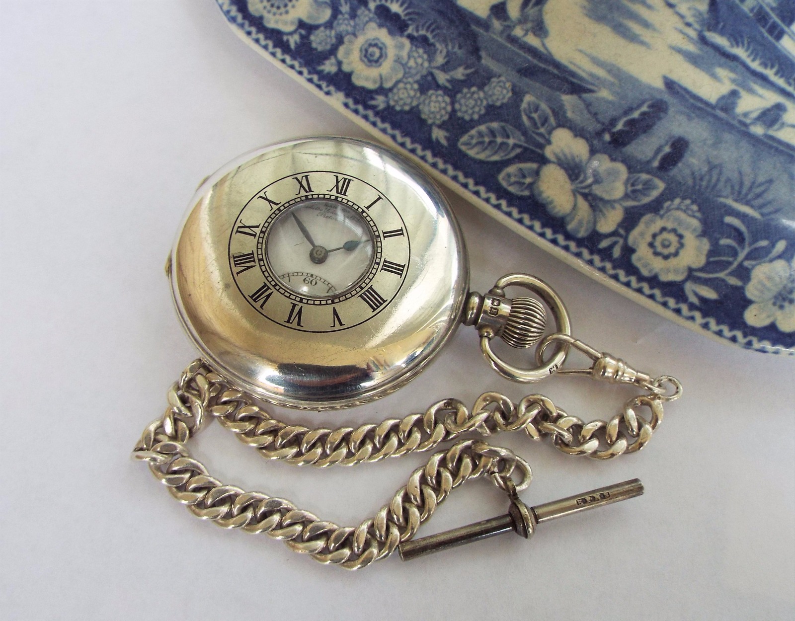1930 Silver Half Hunter Pocket Watch & Albert