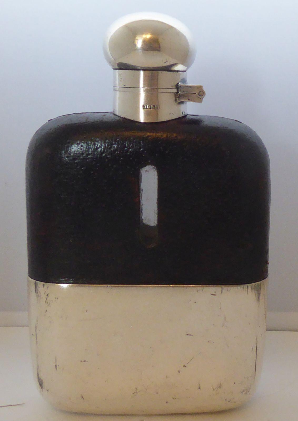 1930s 1/4 Pint Silver Plate Plated Pig Skin Leather Glass Hip Flask James Dixon