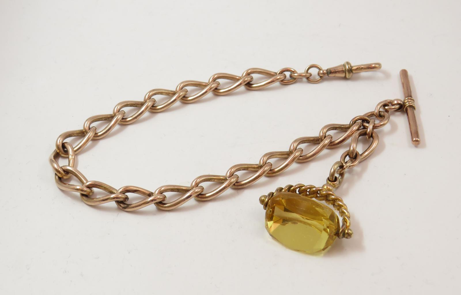 1930s 18ct Rolled Rose Gold Watch Chain & Fob