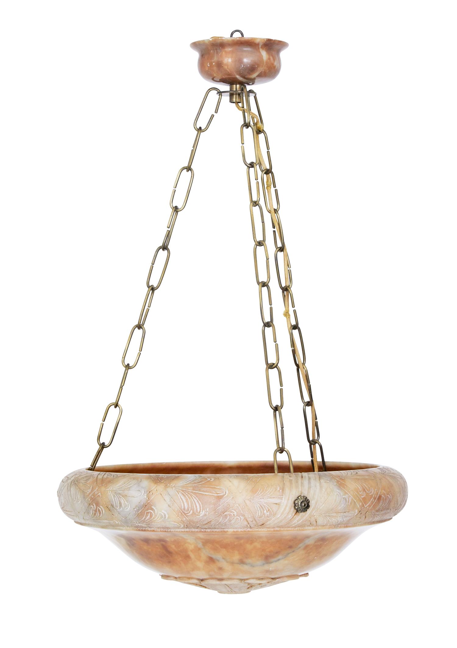 1930's Art Deco Carved Alabaster Chandelier (1 of 4)