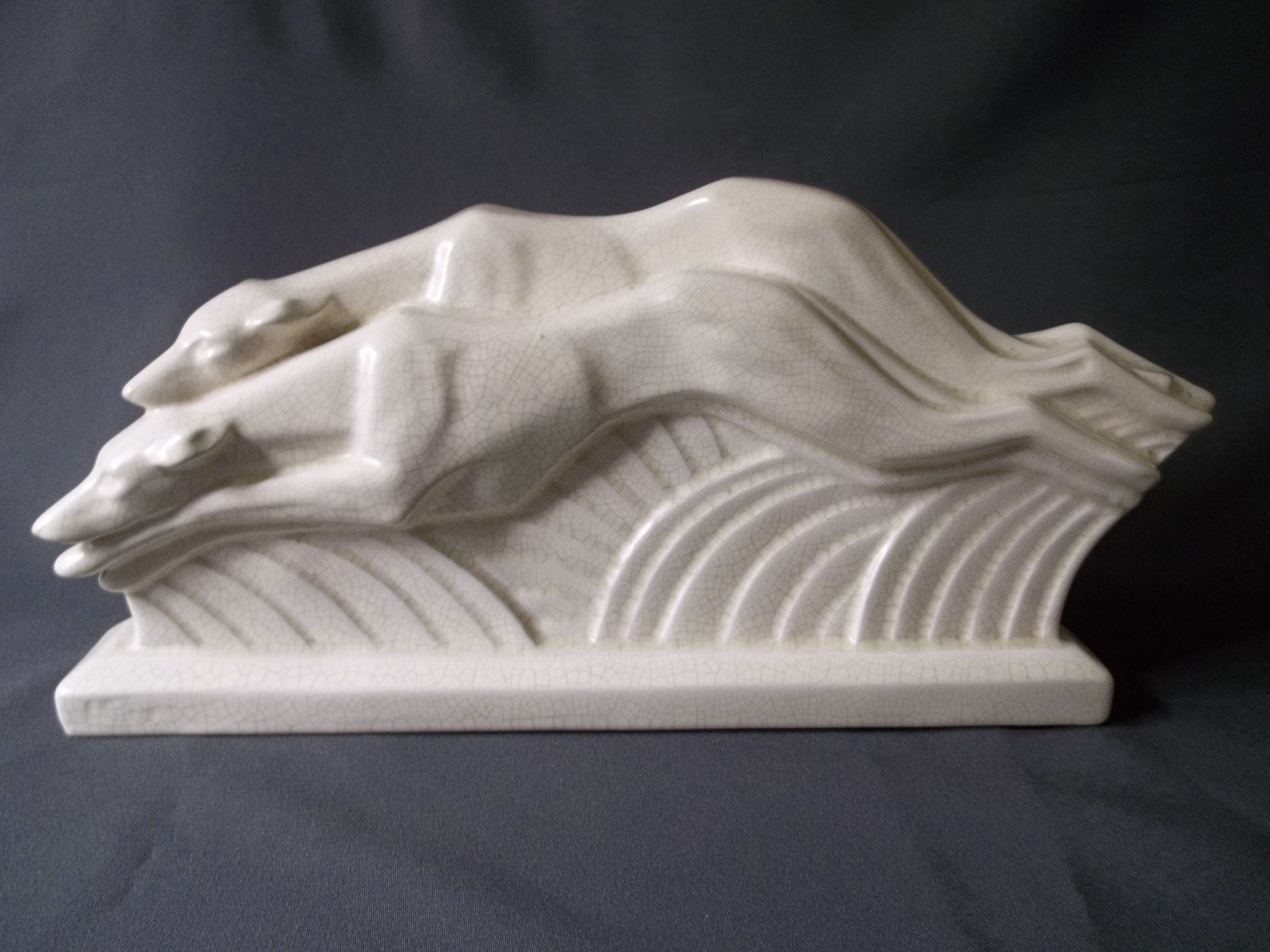 1930's Art Deco Crackle Glaze Racing Greyhounds