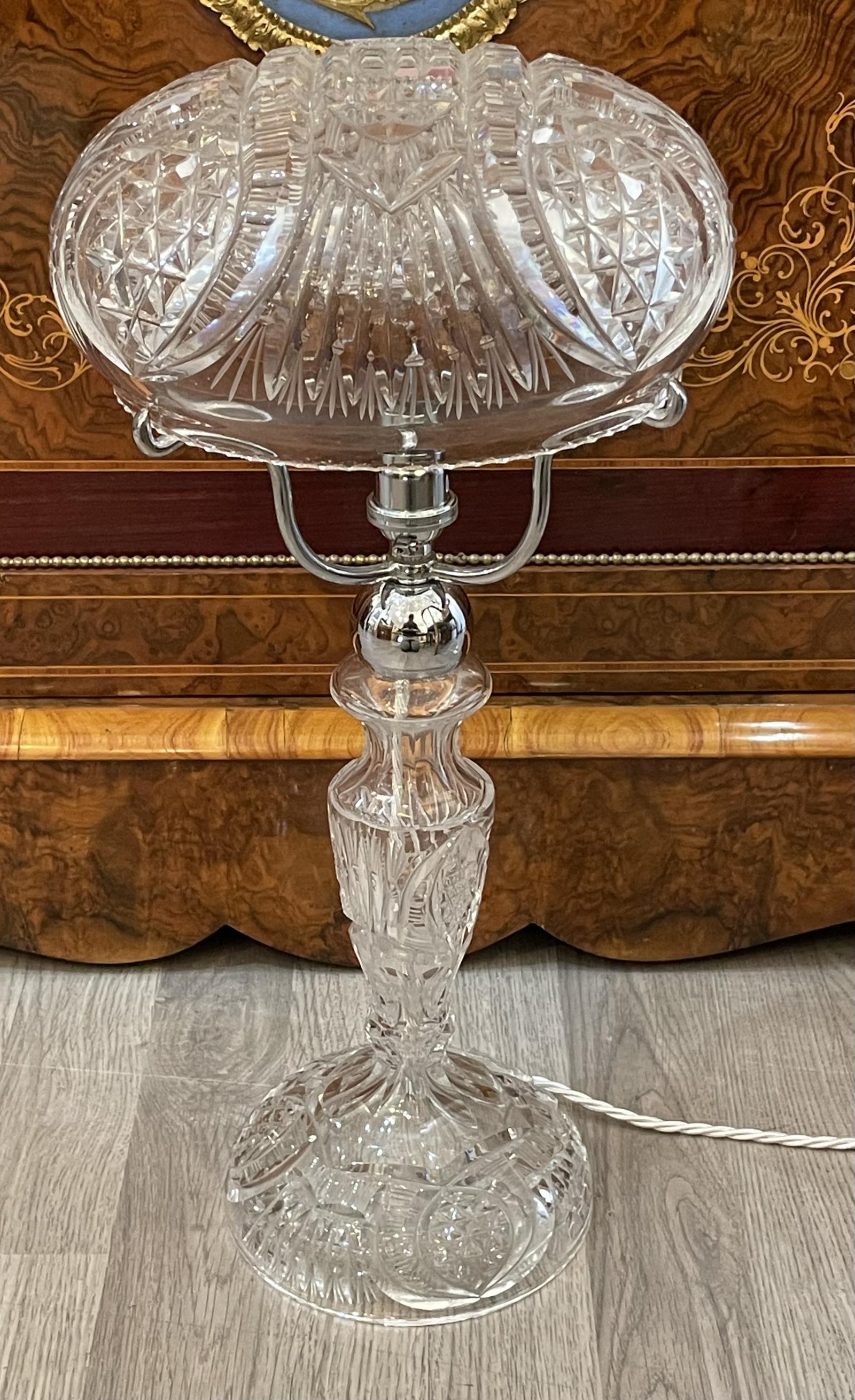 1930s Art Deco Cut Glass Mushroom Table Lamp (1 of 4)