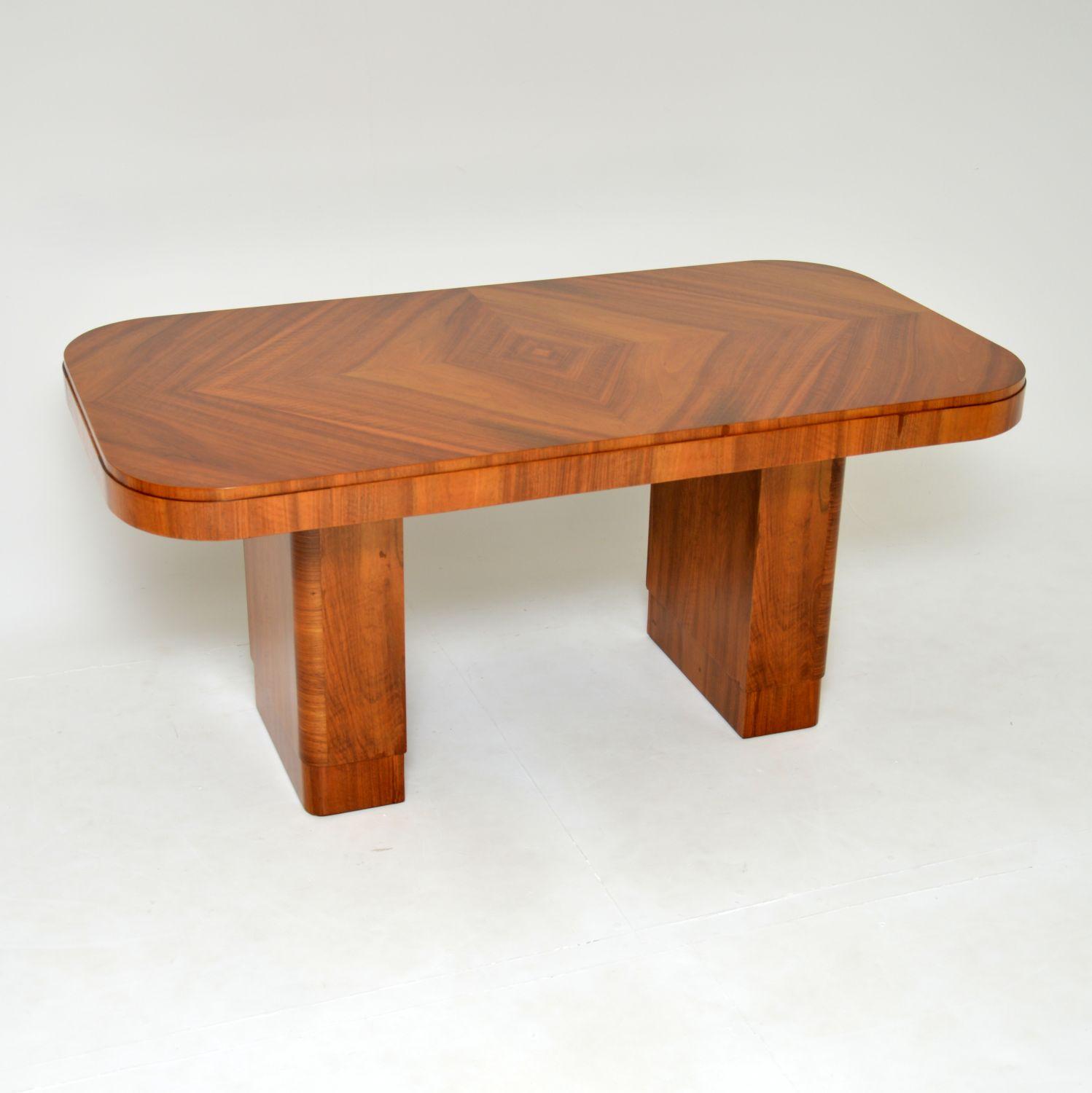 1930's Art Deco Figured Walnut Pedestal Dining Table