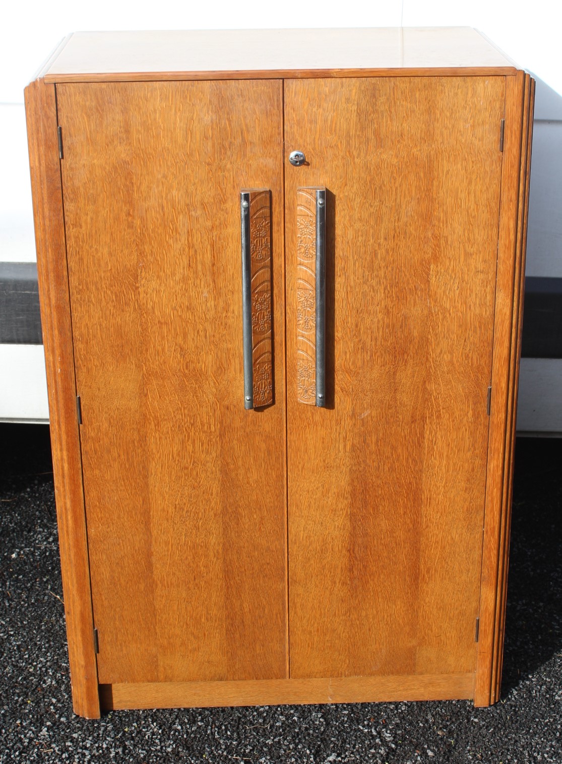 1930s Art Deco Oak 2 Low Door Wardrobe / Cabinet