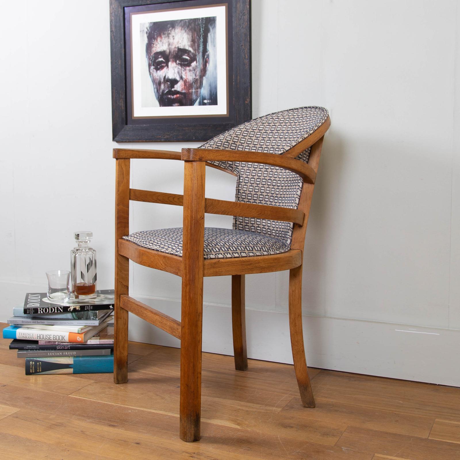 1930s Art Deco Oak Desk Occasional Armchair New Upholstery