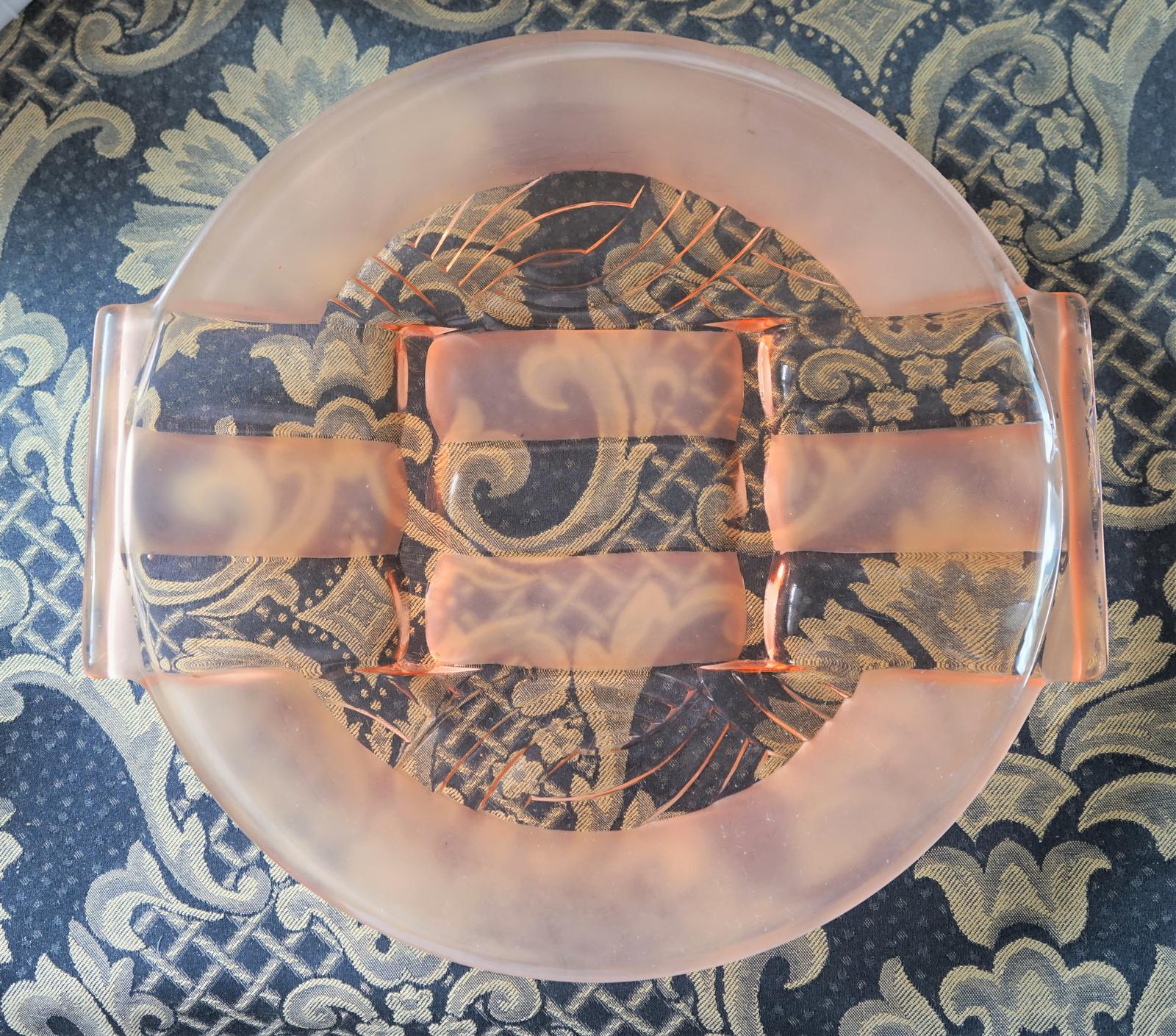 1930s Art Deco Pink Pressed Glass Heavy Serving Cake / Sandwich  Plate -  Part of Collection Available (1 of 5)