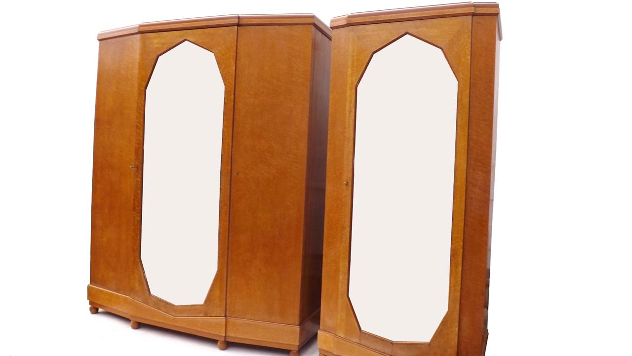 1930s Art Deco Triple & Single Sycamore Wardrobes Dismantle