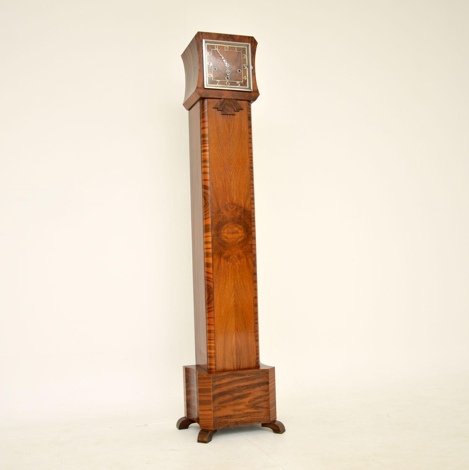 1930's Art Deco Walnut Long Case Grandmother Clock