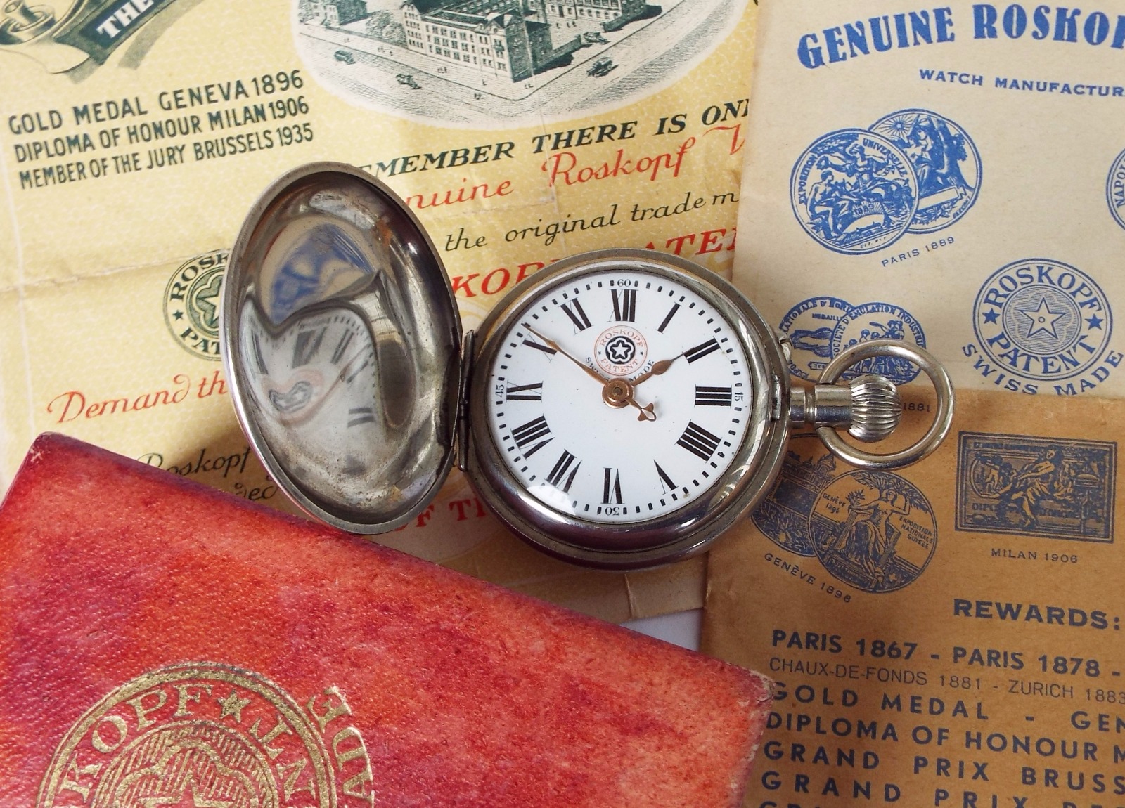 1930s Boxed Roskopf Patent Hunter Pocket Watch