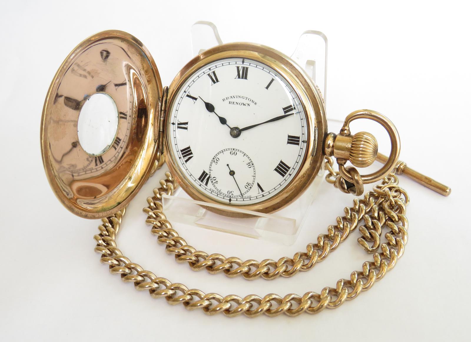 1930s Bravingtons Renown half hunter pocket watch and chain