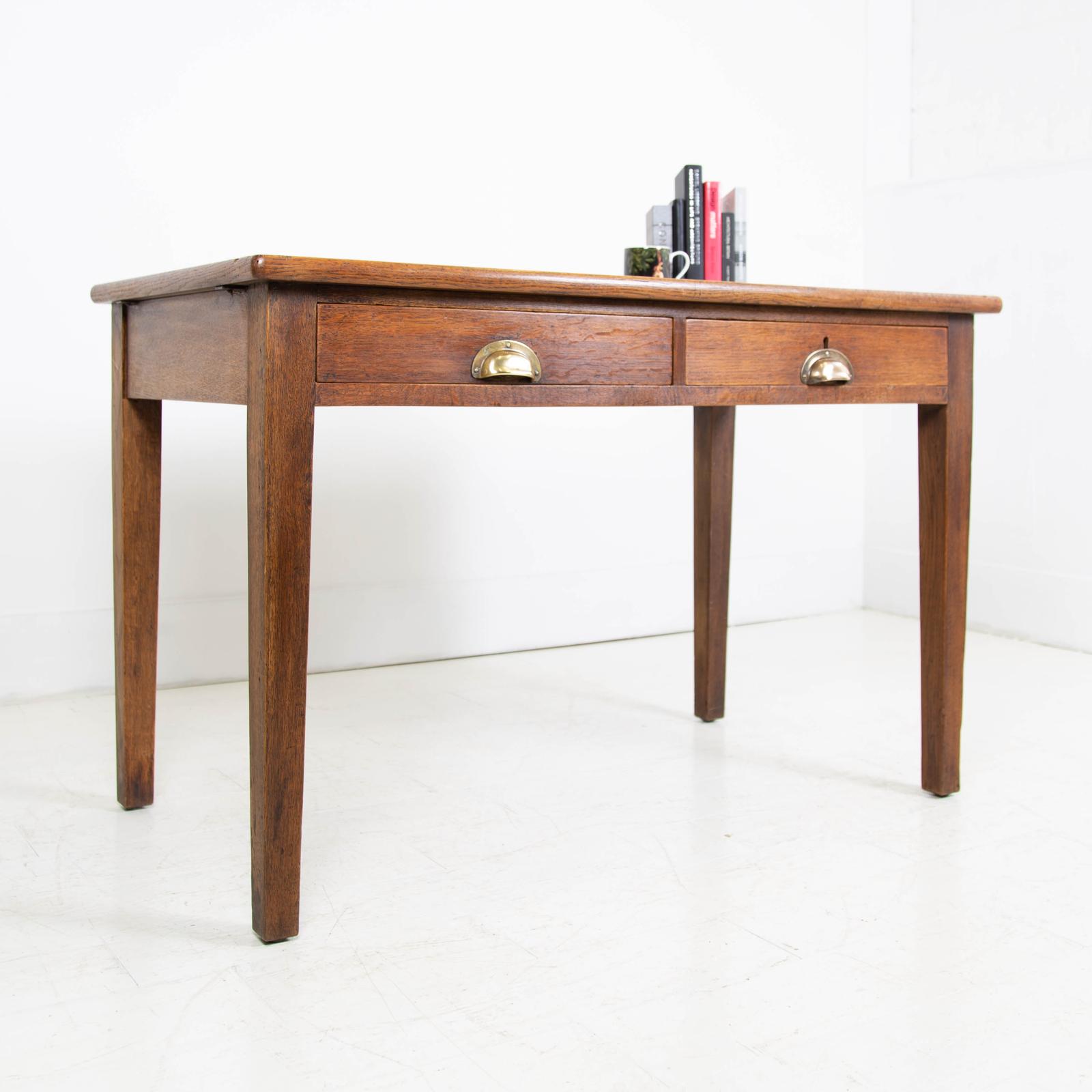 1930s British Vintage 2 Drawer Oak Desk Green Top