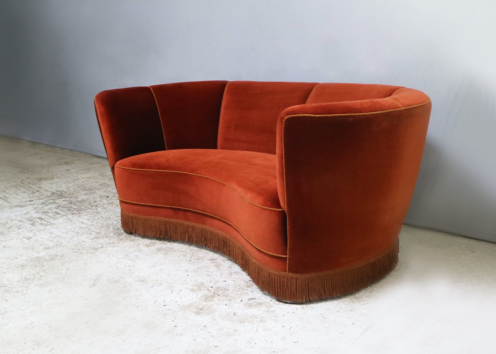 1930s Danish Art Deco 3 Seat Red Velvet Sofa