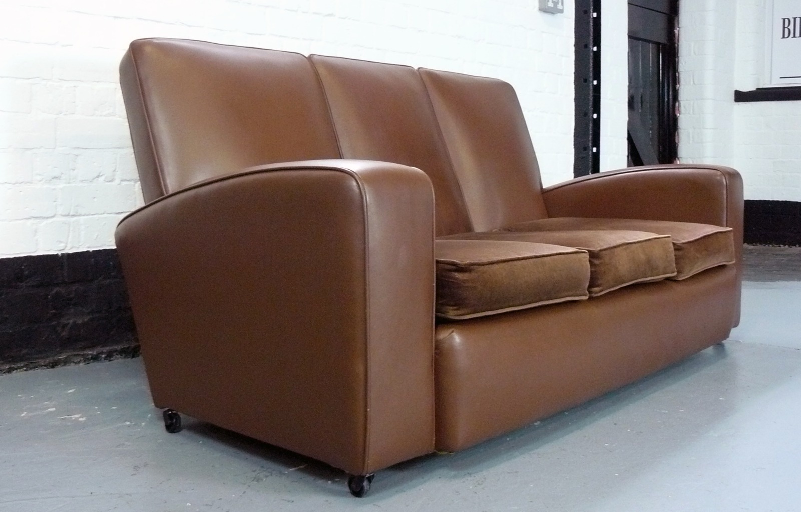 1930s English Club Art Deco Era Leather 3 Seater Sofa (1 of 1)