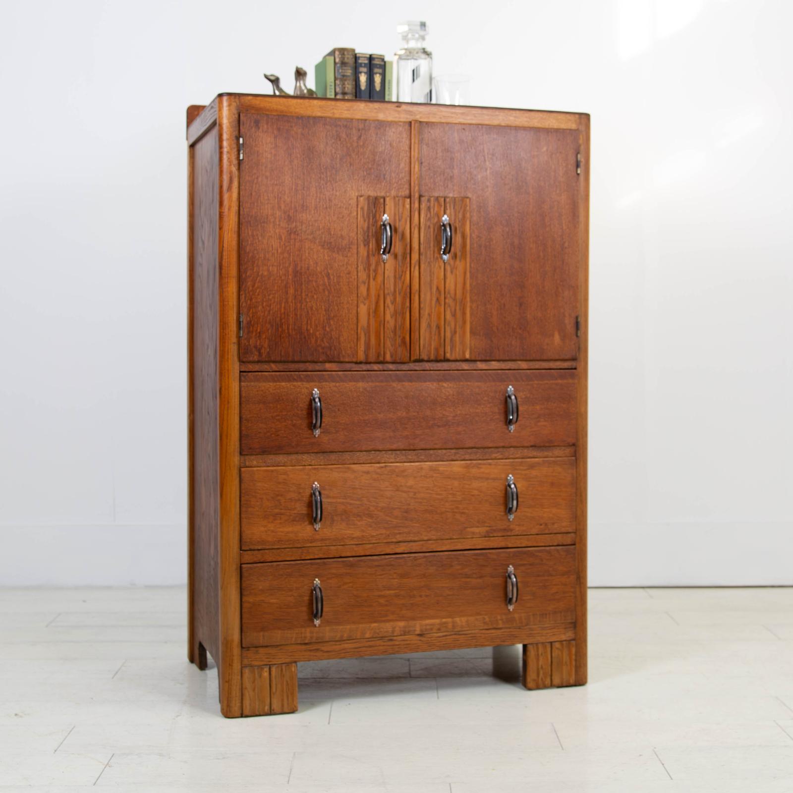 1930s English Oak 2 Drawer Tallboy Cabinet
