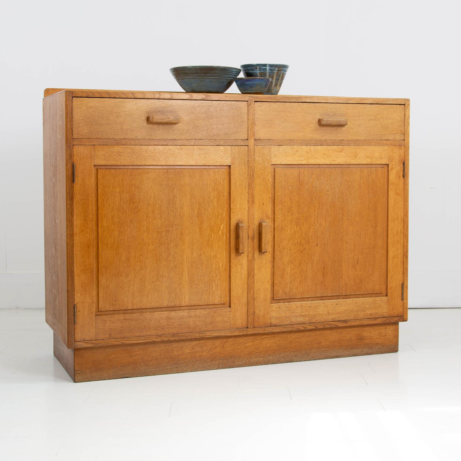 1930s English Oak Modernist 2 Drawer Sideboard Cabinet