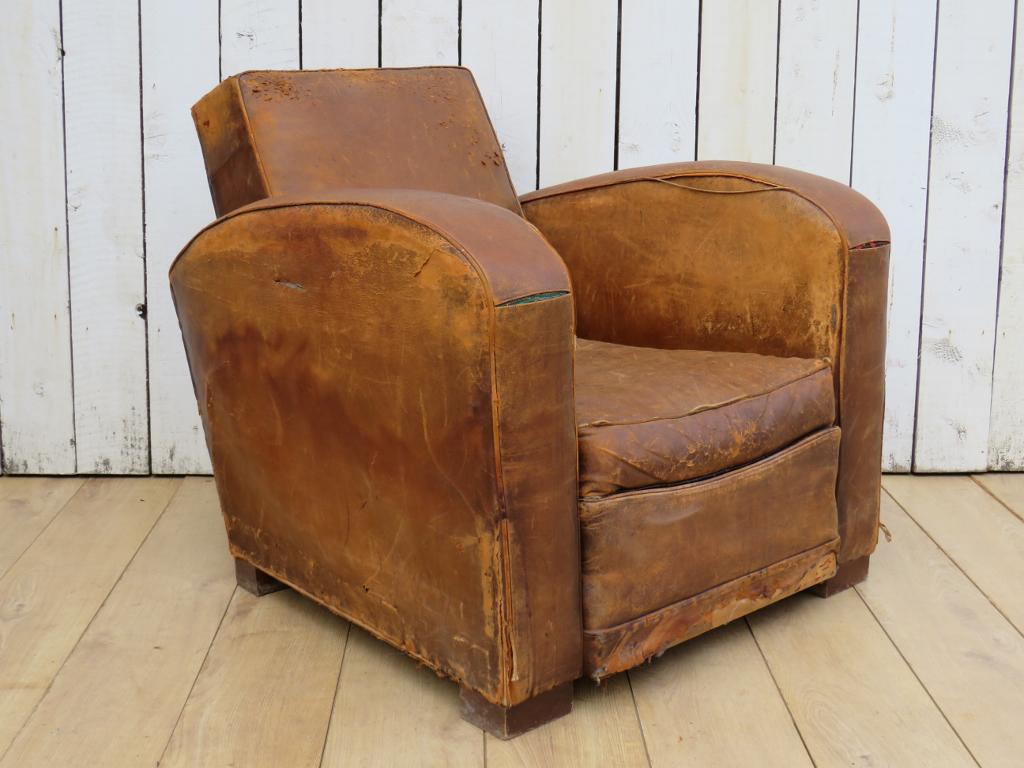 1930s French Leather Club Chair
