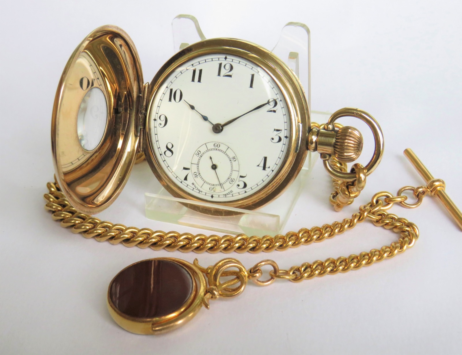 1930s Half Hunter Pocket Watch & Chain