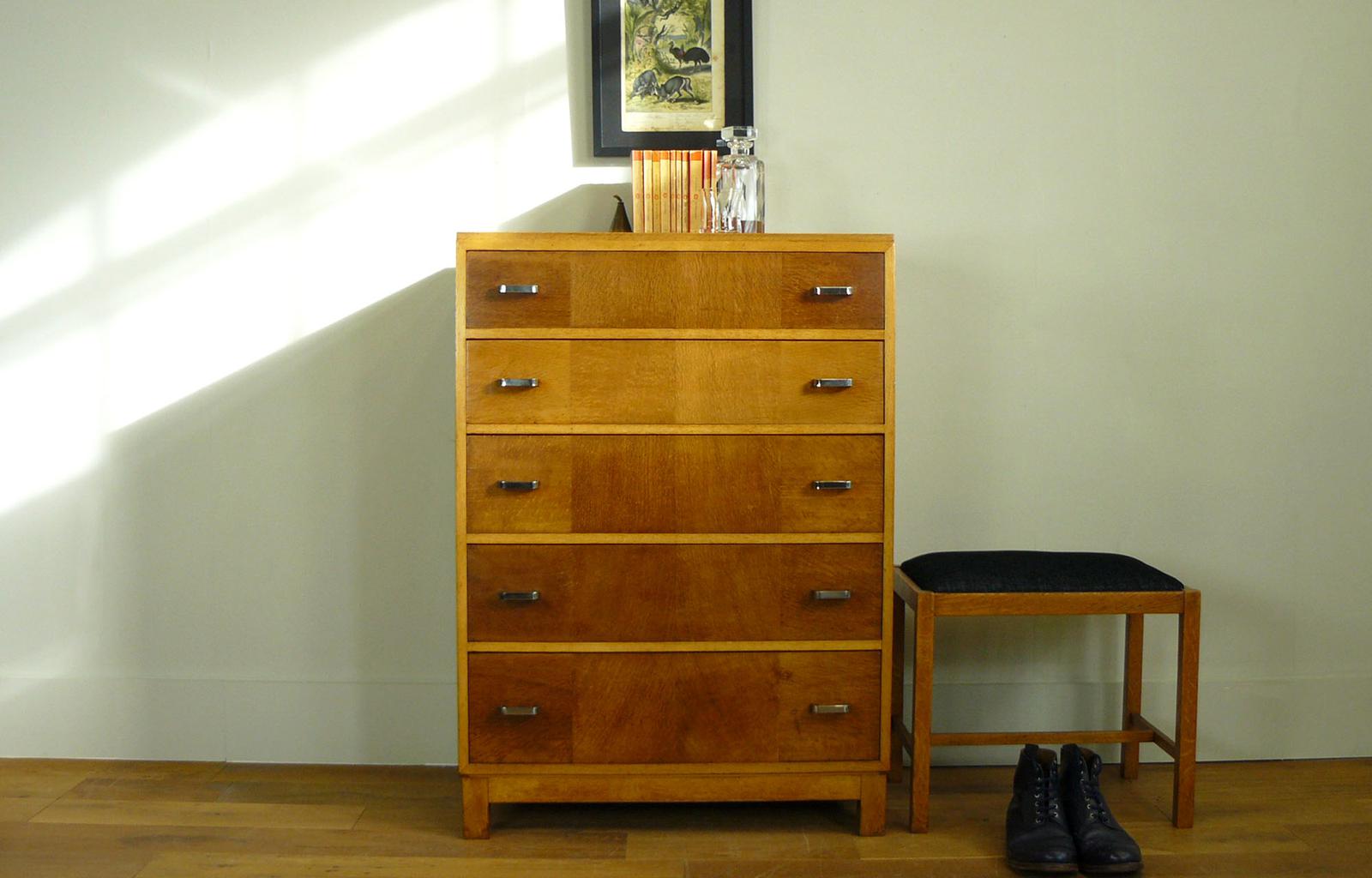 1930s Heals Golden Oak 5 Drawer Chest of Drawers