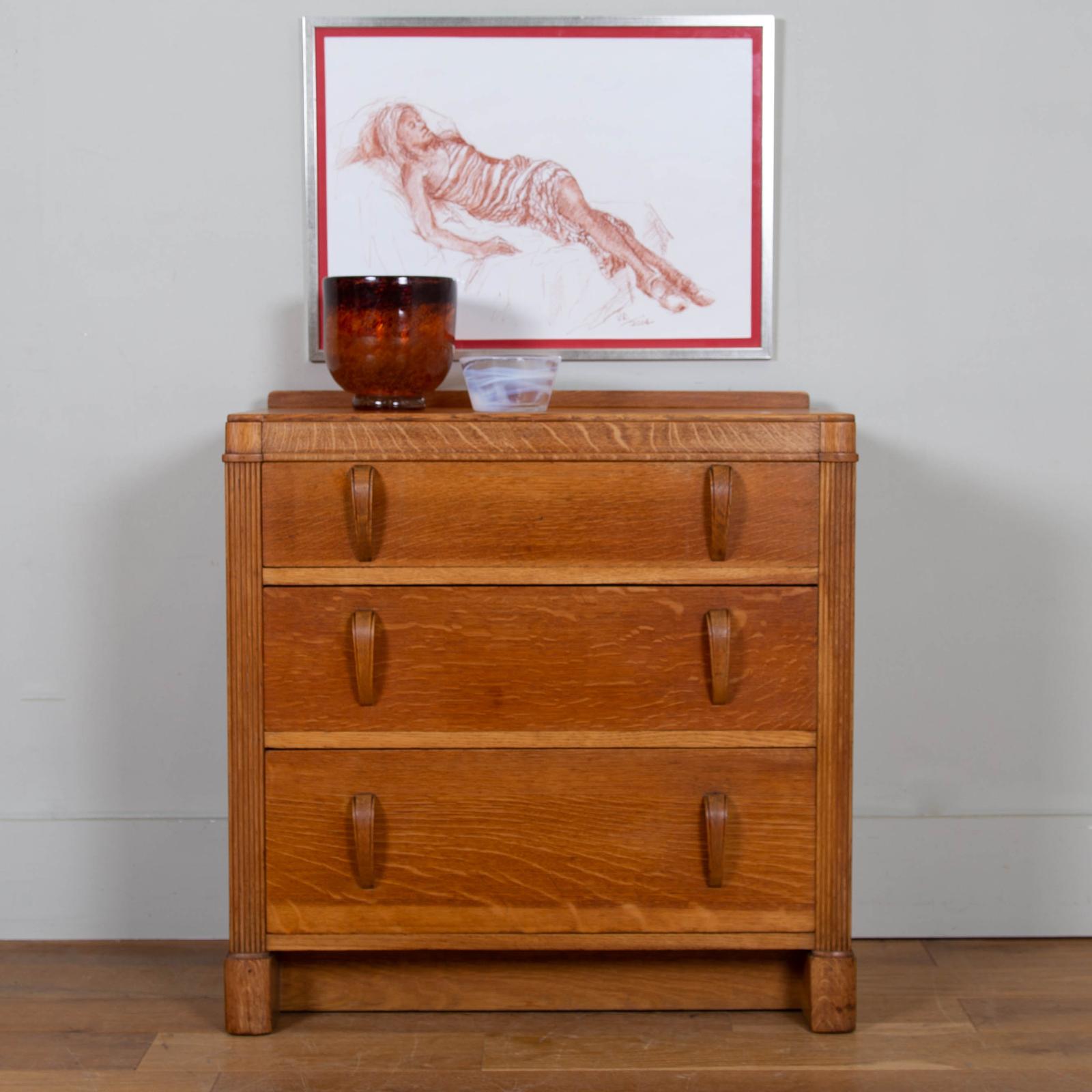 1930s Heal’s of London Odeon Oak Three Drawer Chest No1