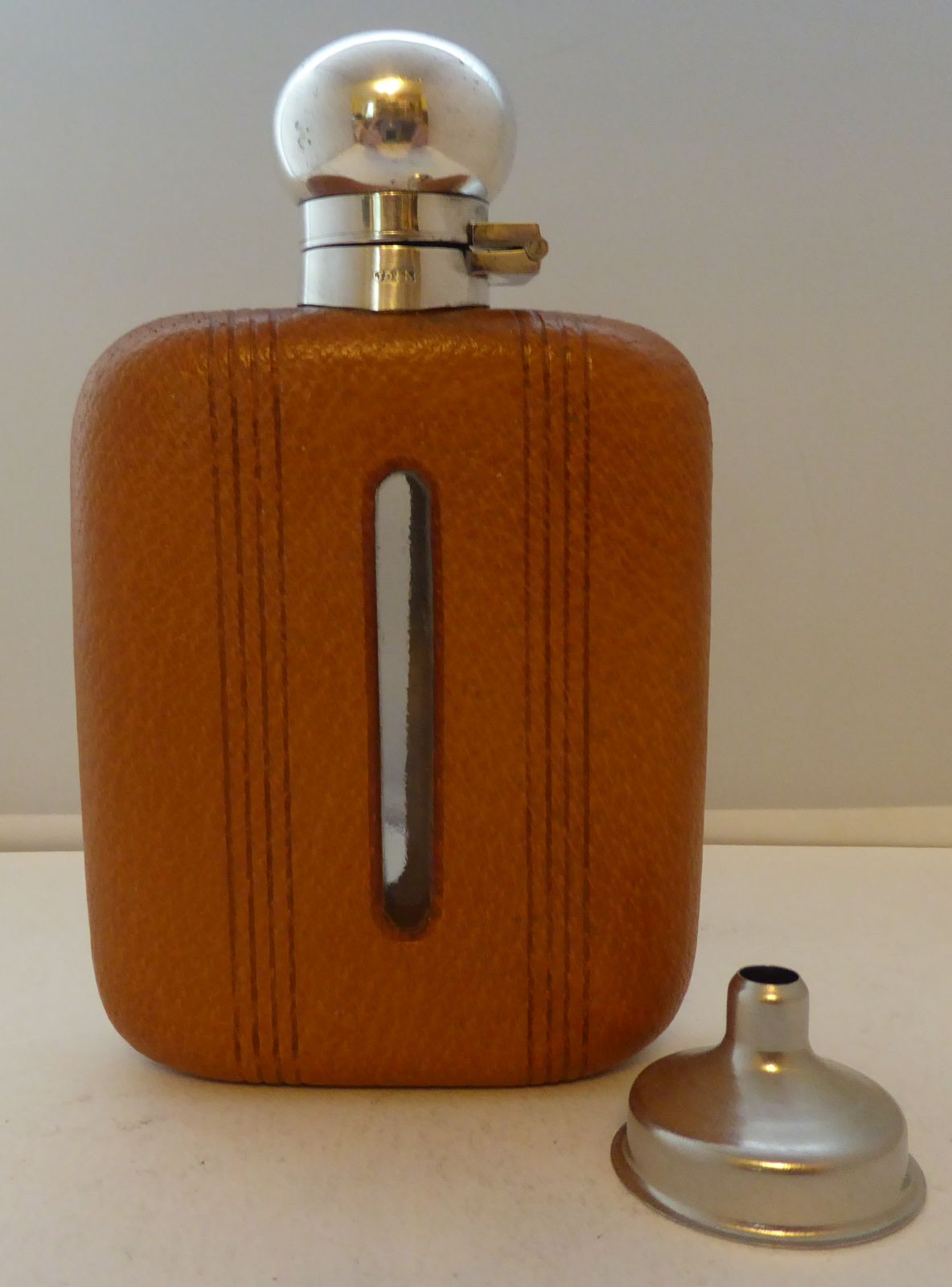 1930s James Dixon Silver Plate Plated Leather Bound Glass Hip Flask