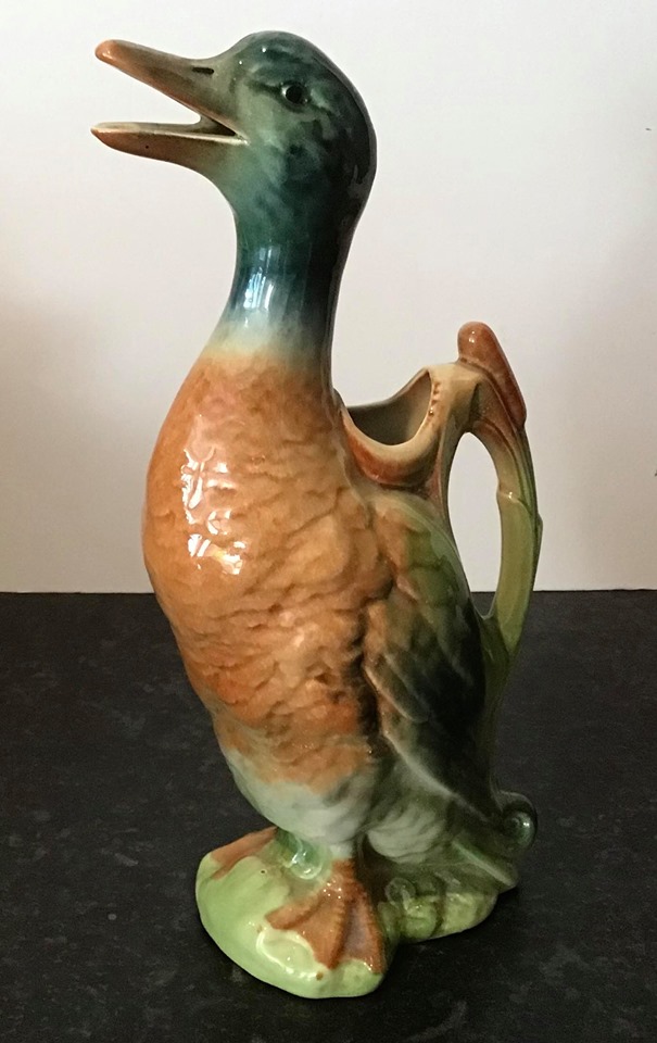 1930s Large Ceramic Majolica Duck French Water Jug (1 of 5)
