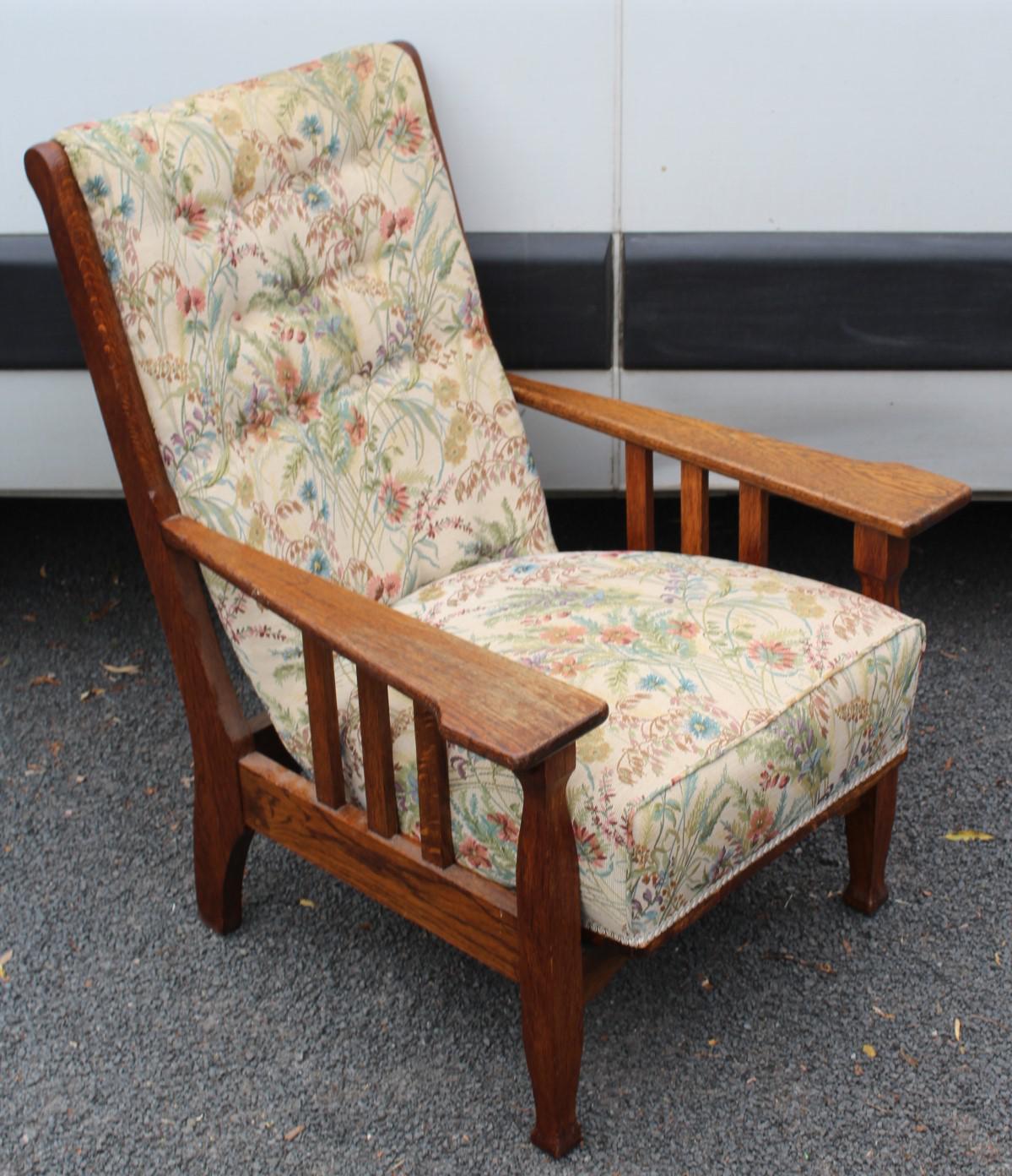 1930s Oak Arts and Craft style Armchair with Floral Upholstery