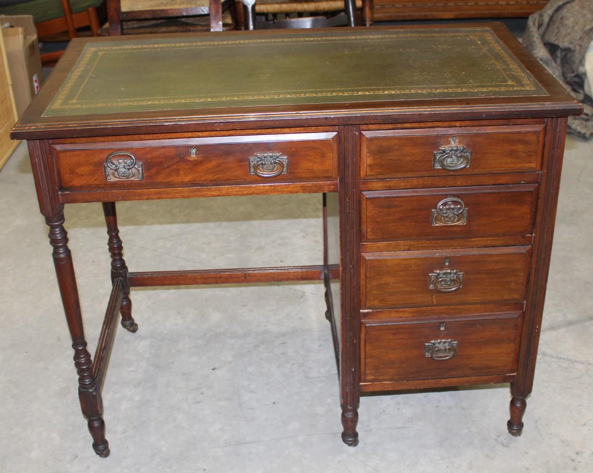 1930s Oak Desk with Green Leather Inset '1 Piece'