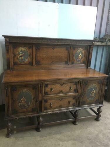 1930s Oak Sideboard with Lacquered Oriental Panels