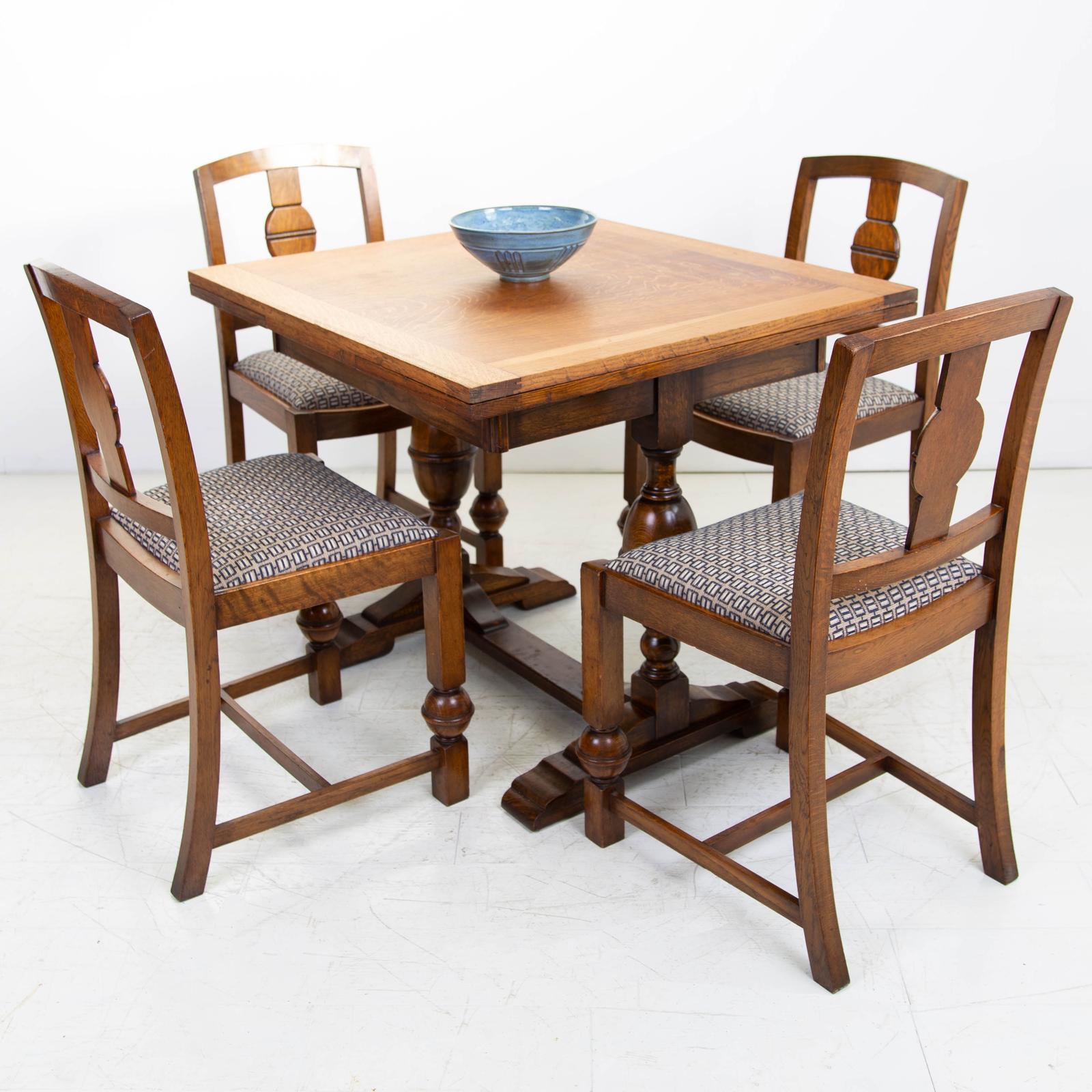 1930s Oak Table and 4 Chairs New Upholstery Deco