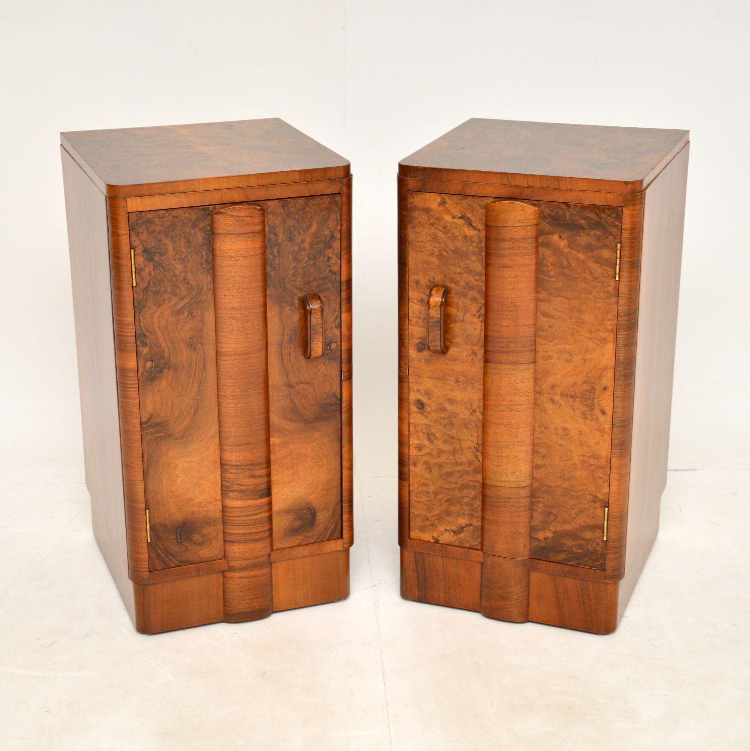 1930's Pair of Art Deco Burr Walnut Bedside Cabinets