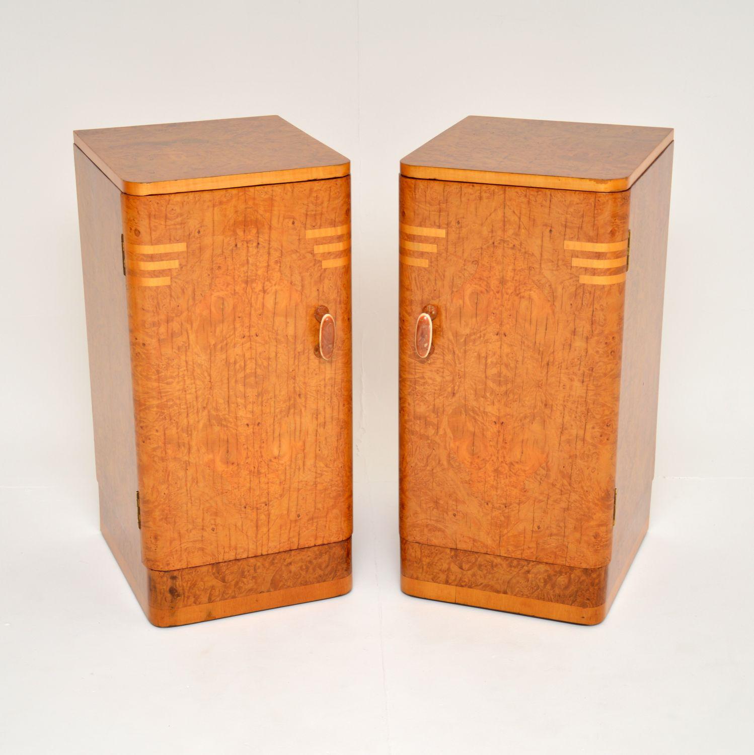1930's Pair of Art Deco Burr Walnut Bedside Cabinets