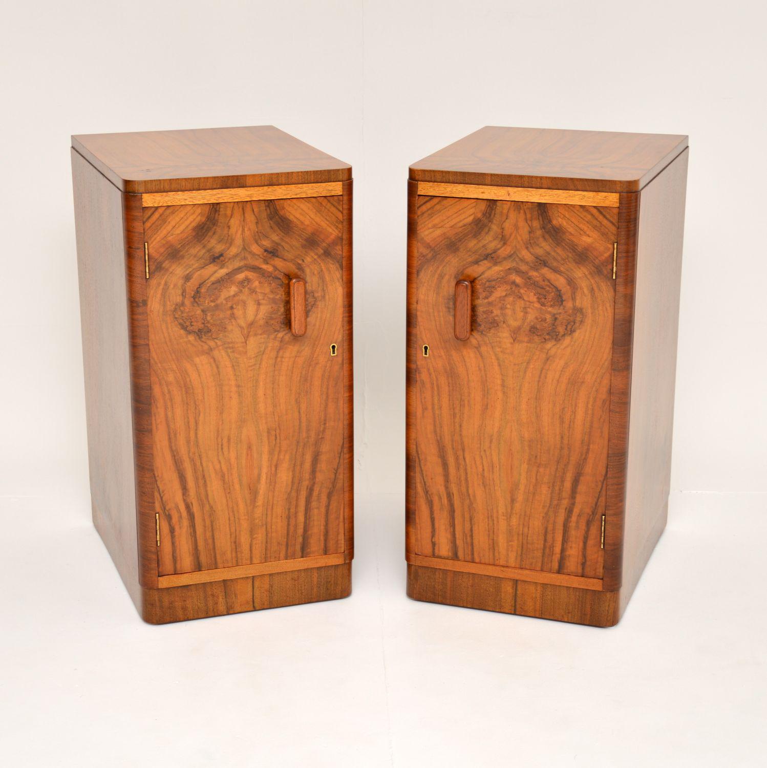 1930's Pair of Art Deco Figured Walnut Bedside Cabinets