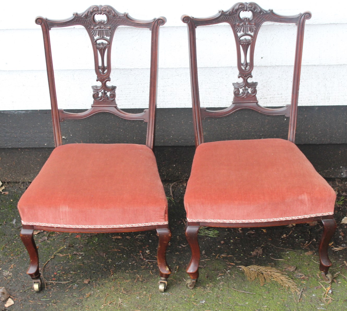 1930s Pair of Low Mahogany Nursing Chairs Pink Upholstery