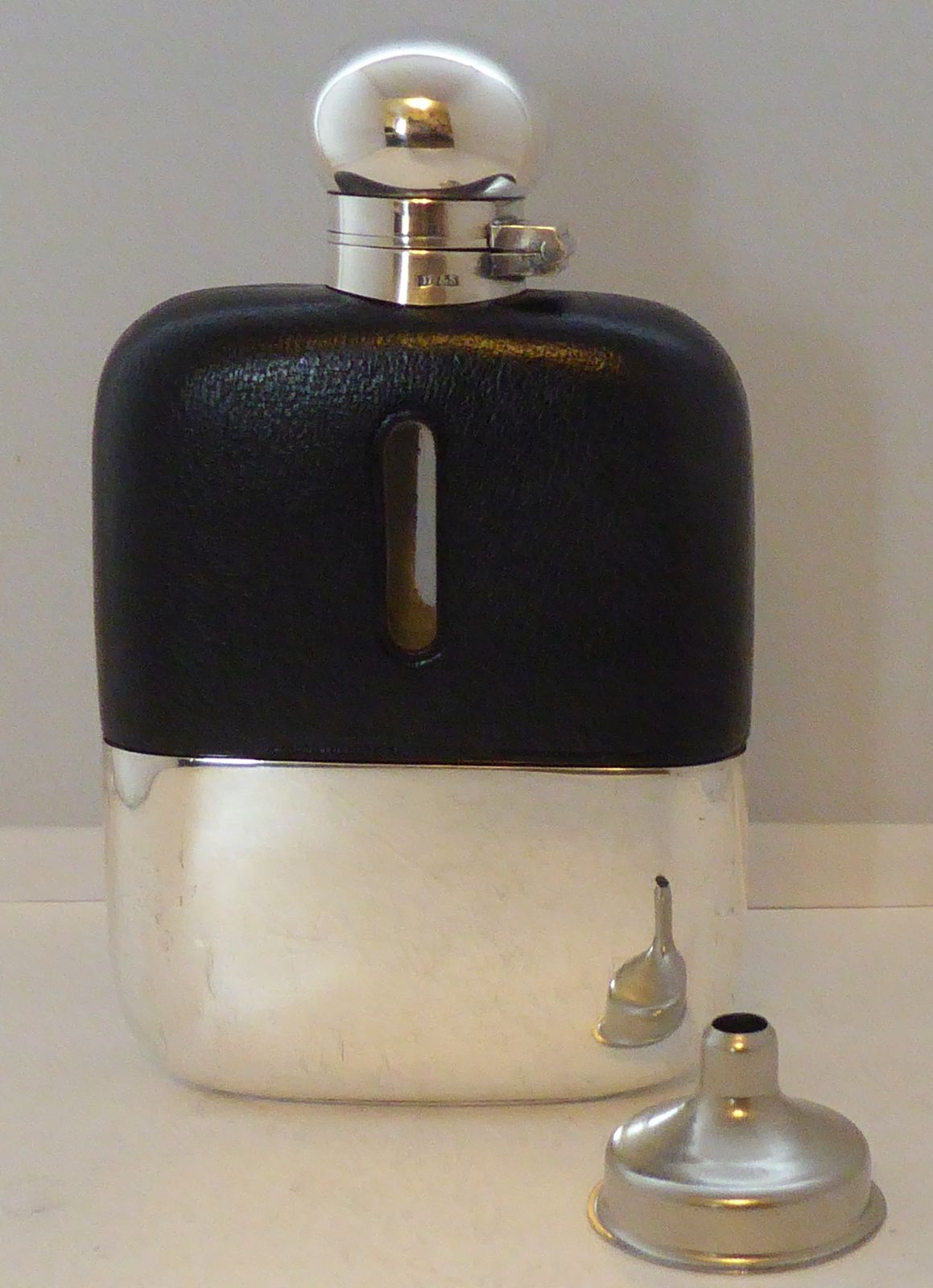 1930s Silver Plate Plated Leather Bound Glass Hip Flask James Dixon Excellent Condition