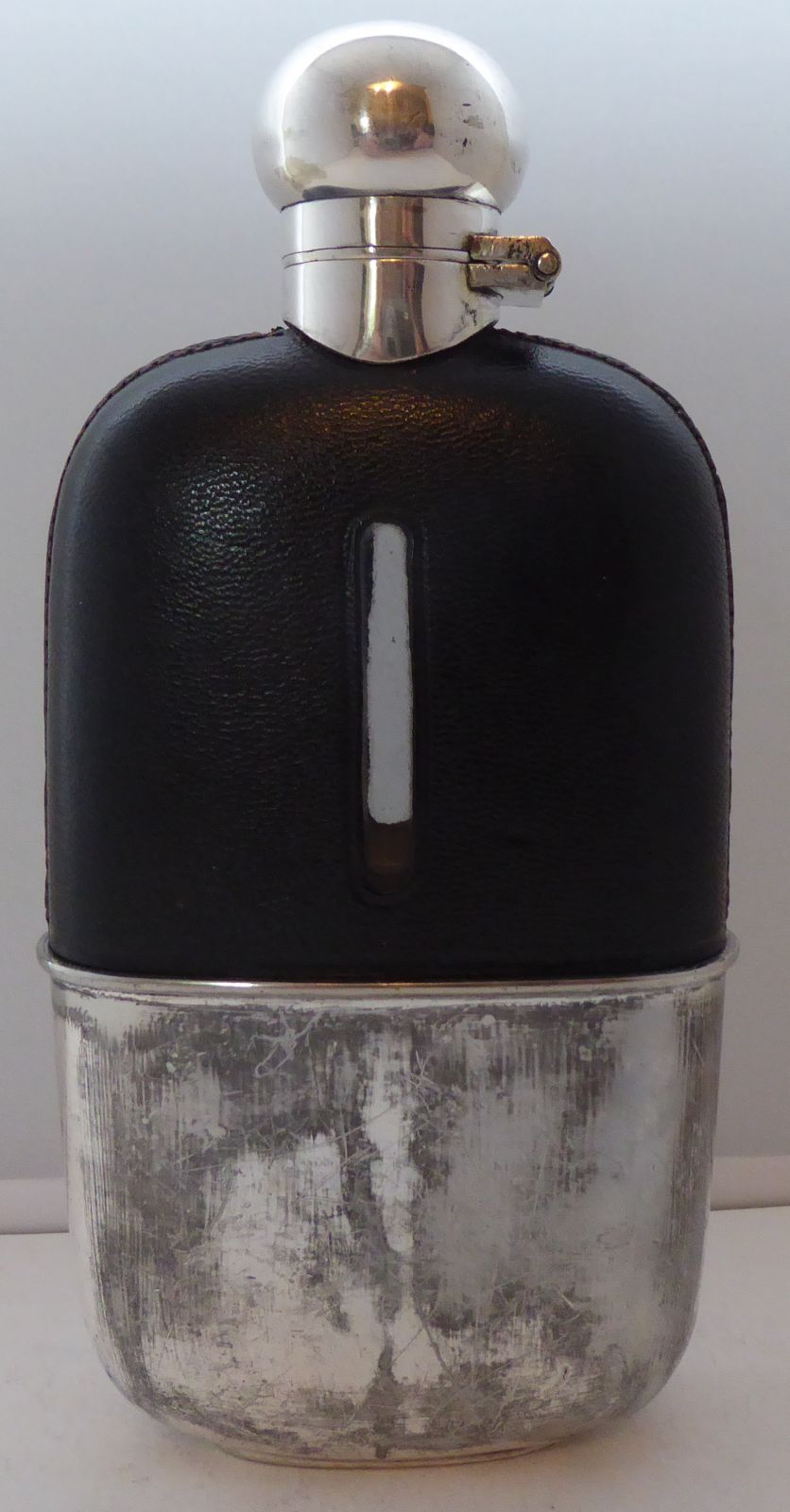 1930s Silver Plated Leather Bound Glass Hip Flask