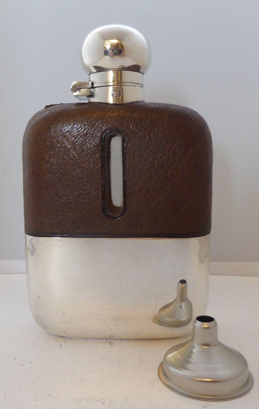 1930s Silver Plated Leather Bound Glass Hip Flask James Dixon 1/4 Pint