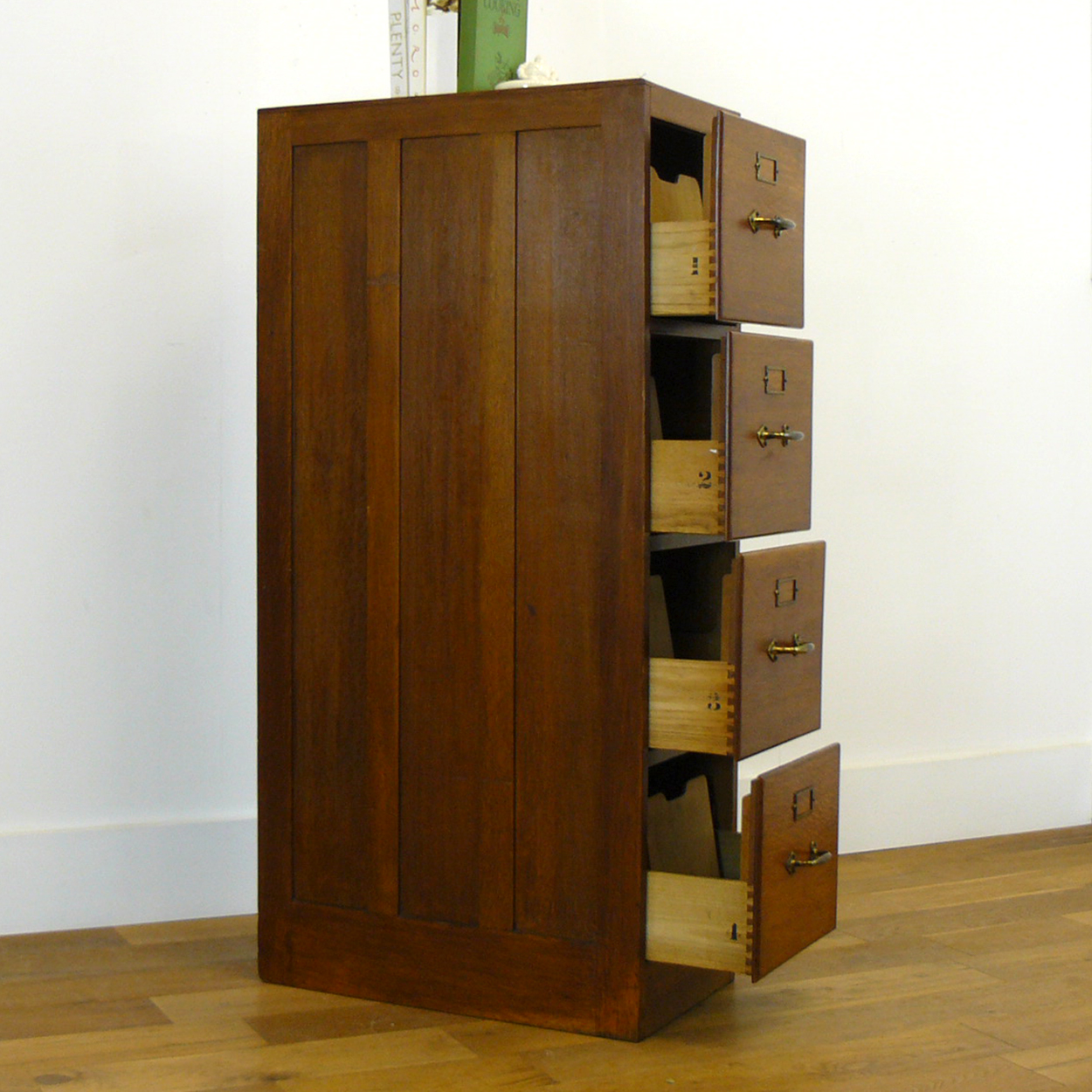 1930s Vintage English Oak 4 Drawer Filing Cabinet Panelled Sides