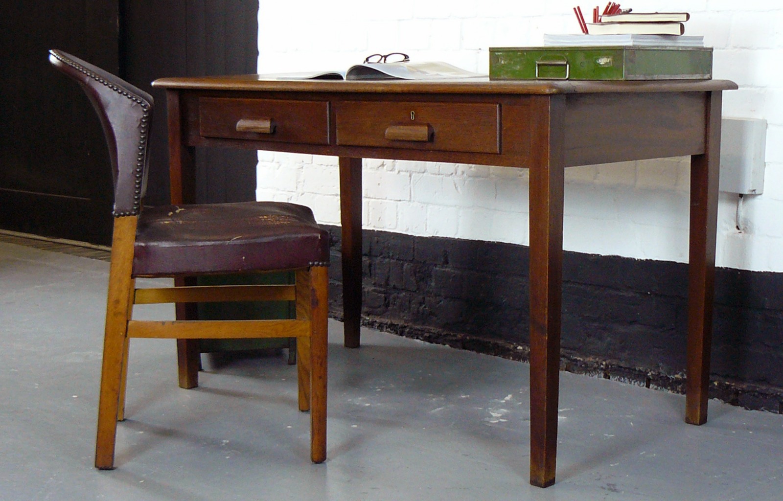 1930s Vintage Oak 2 Drawer Work Desk (1 of 1)