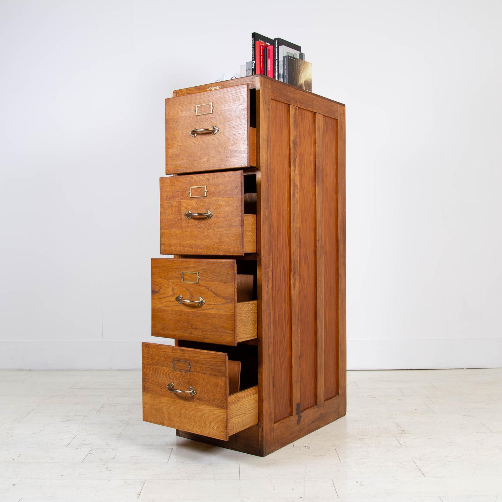 1930s Vintage Oak 4 Drawer Filing Cabinet