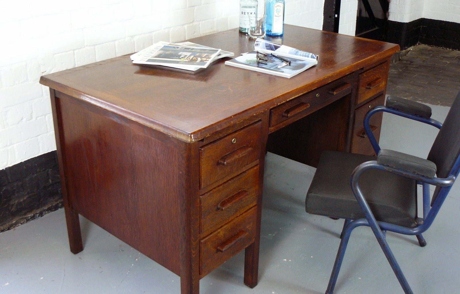 1930s Vintage Oak Pedestal Work Office Desk in Good Historic Order (1 of 1)