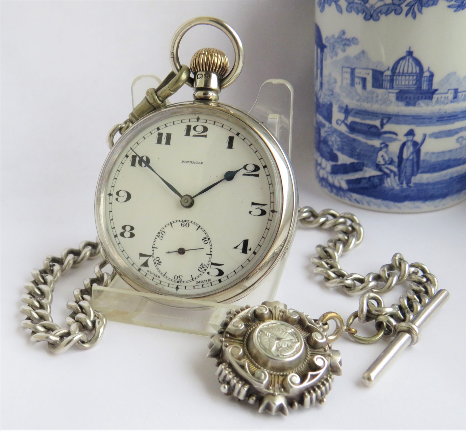 1932 Silver Pinnacle Pocket Watch & Silver Chain