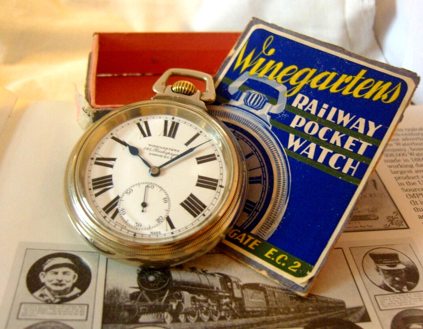 1937 Vintage Winegarten's Railway Pocket Watch 7 Jewel Large Nickel Case FWO