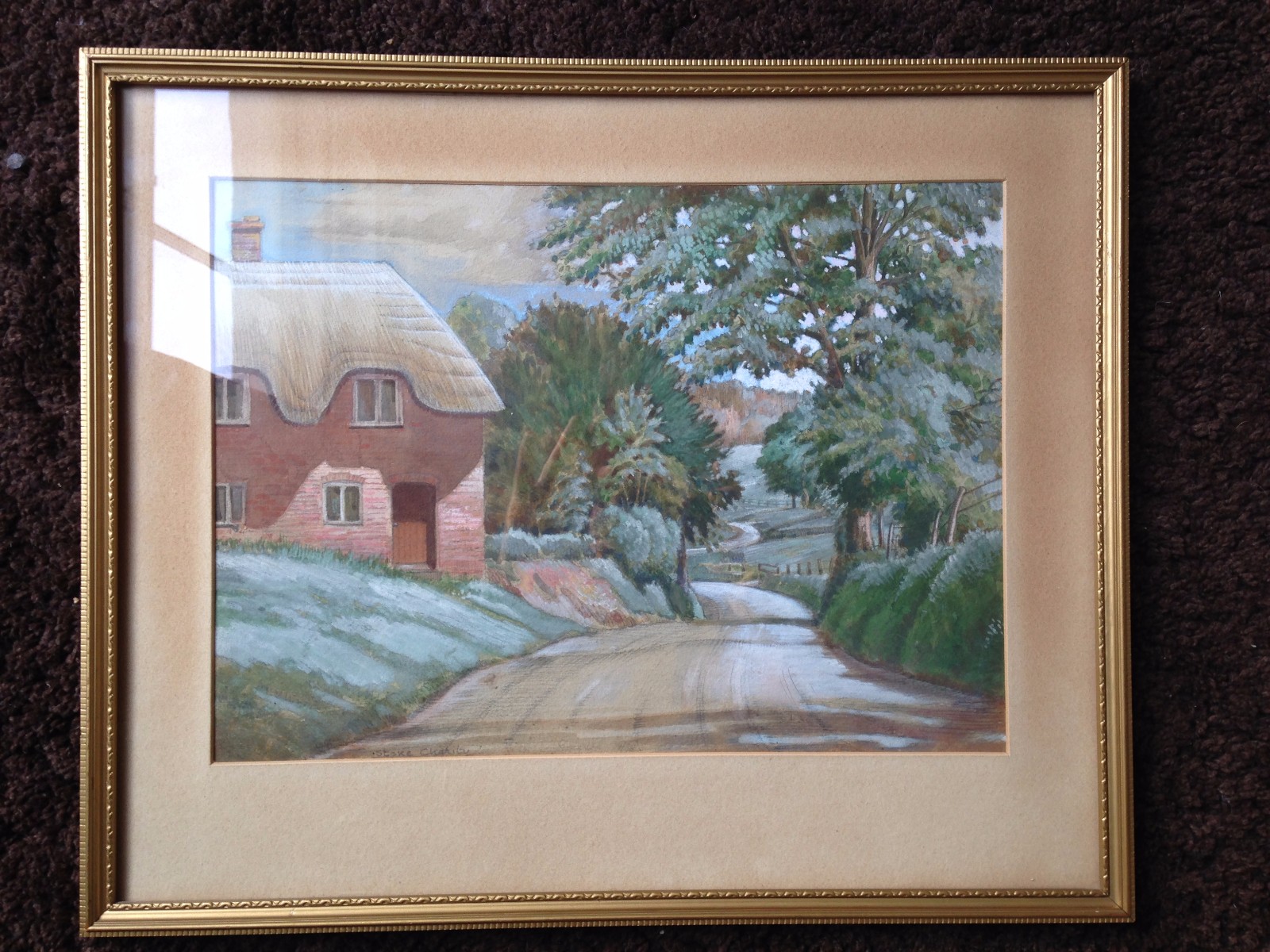 1938 Watercolour of 'Old English Country Thatched Cottage at Stoke Charity' (Free shipping to UK)